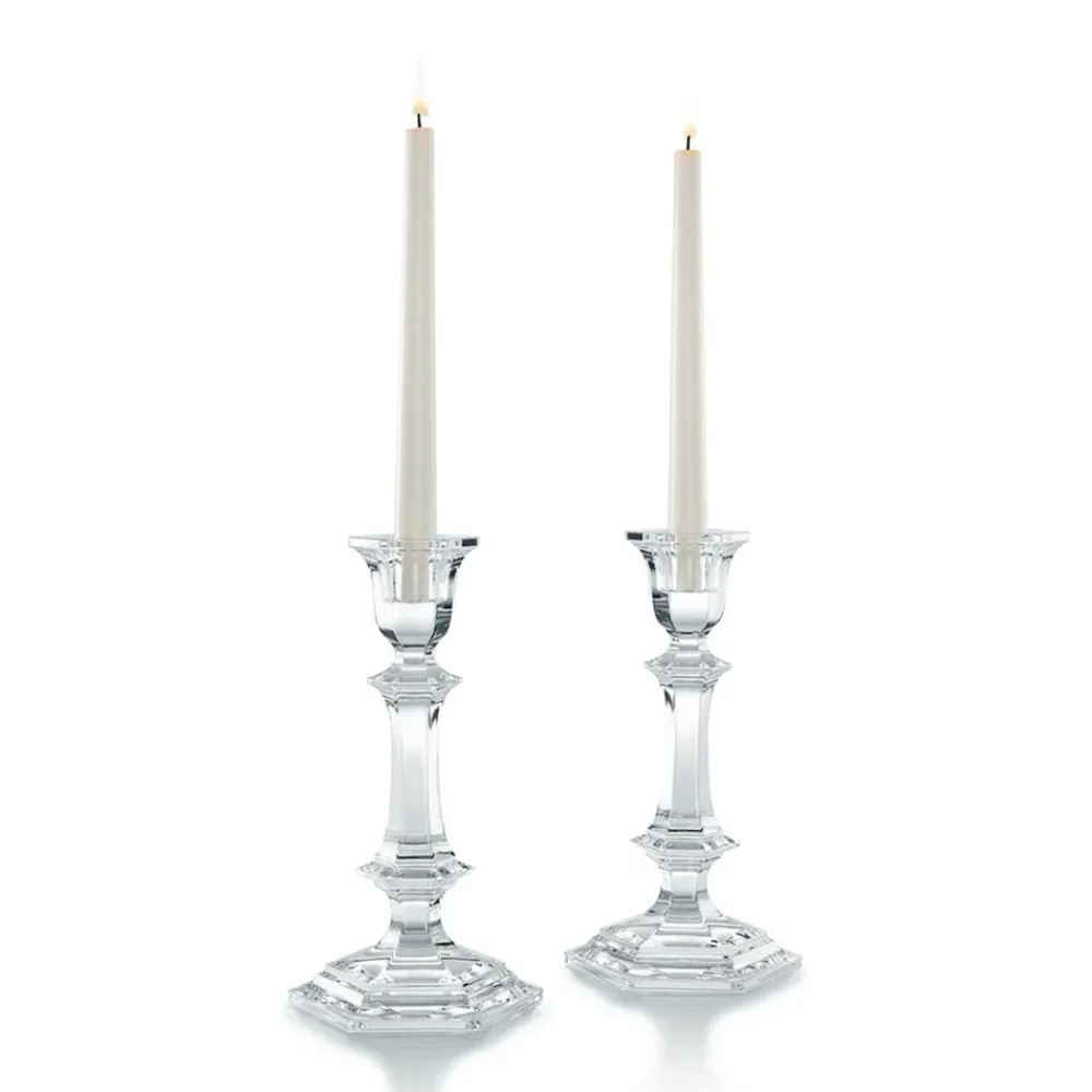 Founded in 1765, Baccarat is renowned throughout the world for the remarkable quality and timeless design of its glassware. With master blowers, cutters, engravers, and gilders honing their techniques to perfection, Baccarat introduces you to the finest crystal and an entire world of excellence. Created in 1841, the Harcourt collection first saw light in 1841 when King Louis Philippe of France ordered a ceremonial chalice engraved with his monogram. With its perfect shape resting on a hexagonal base and six-cut crystal facets capturing the beauty of light, Harcourt is steeped in history and transforms every event into an elegant and refined celebration. The candlesticks exude both classic and modern style with their powerful lines and architectural style.