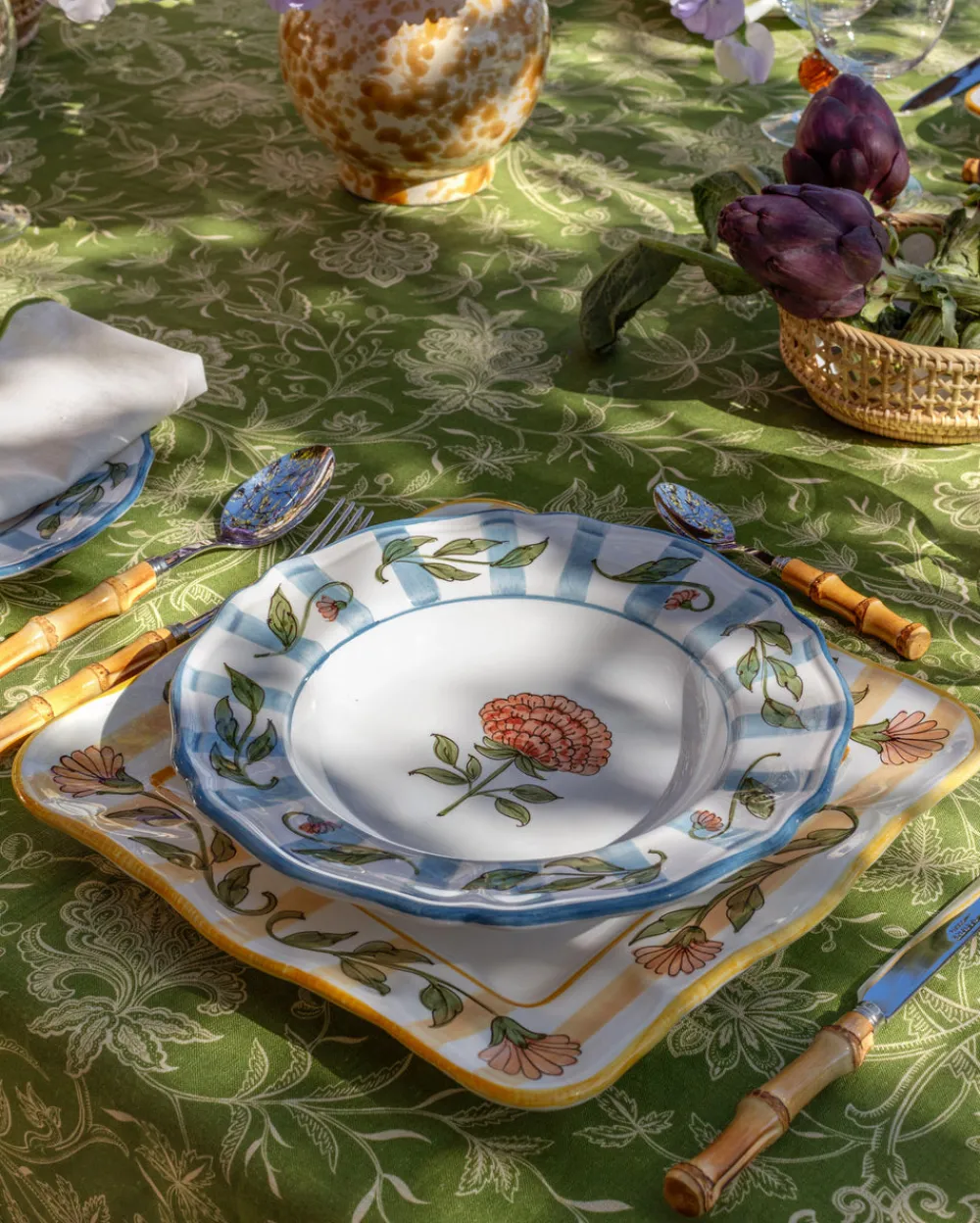 Inspired by the pages of Cabana—a magazine for a new generation of globetrotters—Casa Cabana’s homewares both explore and expand the worlds we share with our interiors. Designed in-house and handcrafted by artisans the world over, each piece feels unique, collectible, and at once part of your home. Printed in Italy on 100% linen, the DESTREE x Cabana Tablecloth in Green features a soft orange floral motif that brings a Provencal charm to the table. Packaged in a matching storage pouch, it layers beautifully with the collection’s ceramic plates and linens.