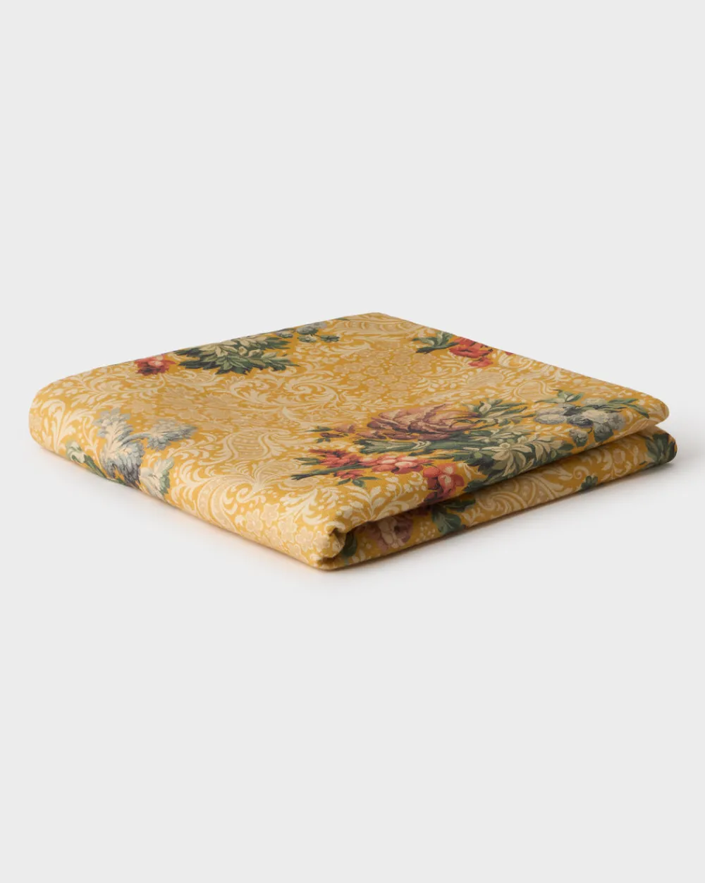 Inspired by the pages of Cabana—a magazine for a new generation of globetrotters—Casa Cabana’s homewares both explore and expand the worlds we share with our interiors. Designed in-house and hand crafted by artisans the world over, each piece feels unique, collectible, and at once part of your home. The Peonia Tablecloth features a soft yellow background adorned with intricate floral bouquets and delicate ornamental patterns. Made of 100% linen, it will add a charming touch to your next family dinner or party.