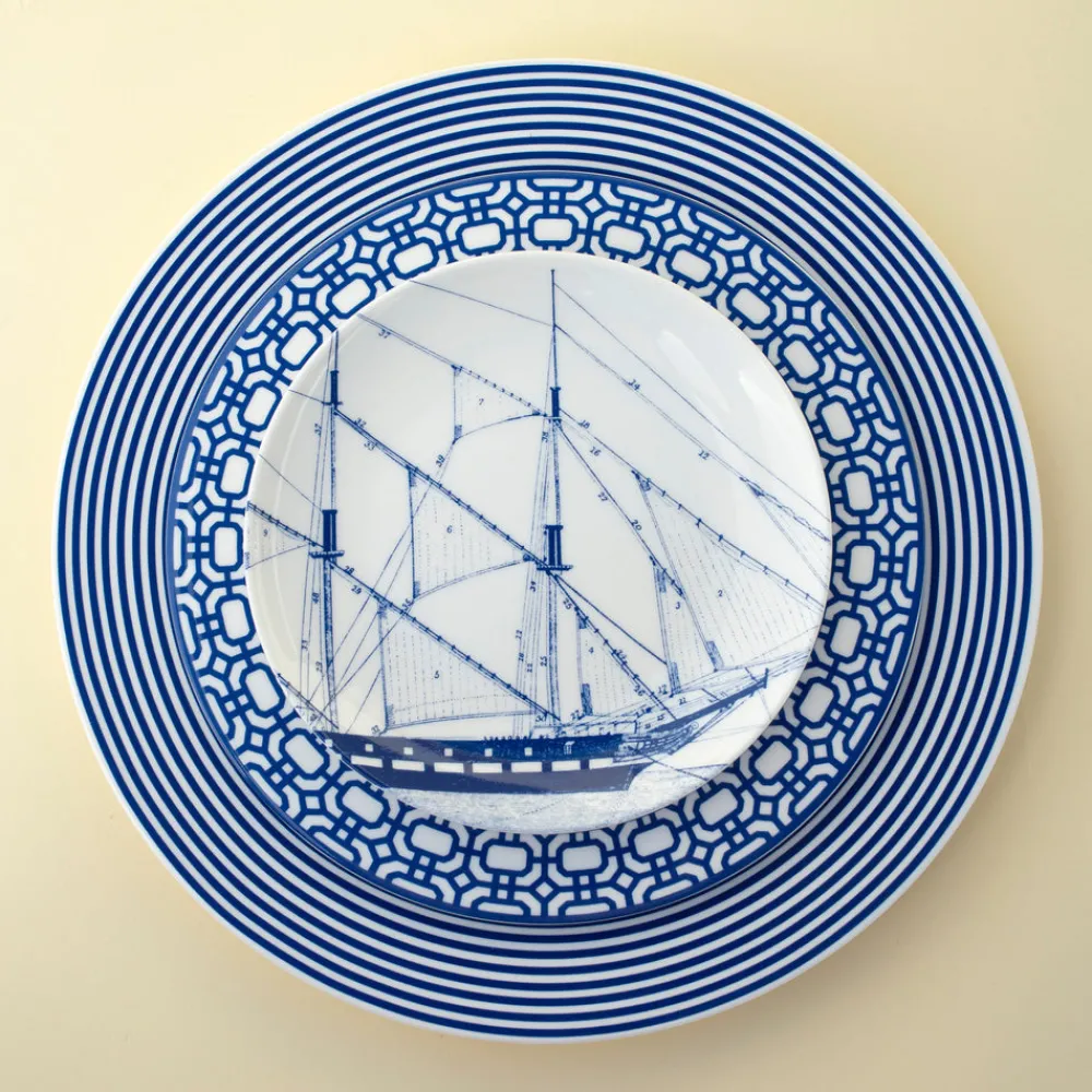 In celebration of America’s nautical heritage, our set of four canapé plates showcase vintage illustrations once used to show sailors the riggings of historic wooden ships. Nostalgia for these merchant ships from long ago are sure to please a sailing aficionado. These plates lend a sophisticated accent to parties and offer seaworthy durability for everyday use.