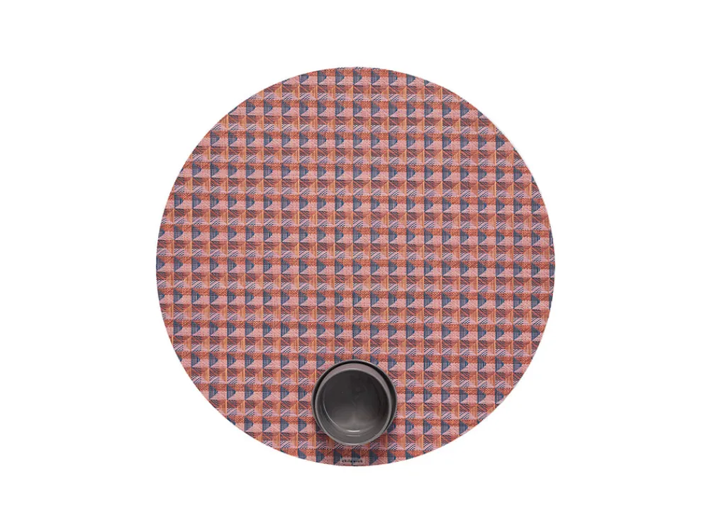 Employing master weavers and renewable materials, Chilewich tabletop items combine a passion for beautiful, durable and easy-to-clean textiles with artistic expression, innovative patterns, and seasonal colors. A fresh perspective on stripes, the Crane Round Placemat in Raspberry reveals the power of weaving to bring new dimension to graphic forms. Vertical and horizontal lines interact with the weave structure to create remarkable depth, while angularity lends the impression of added texture.