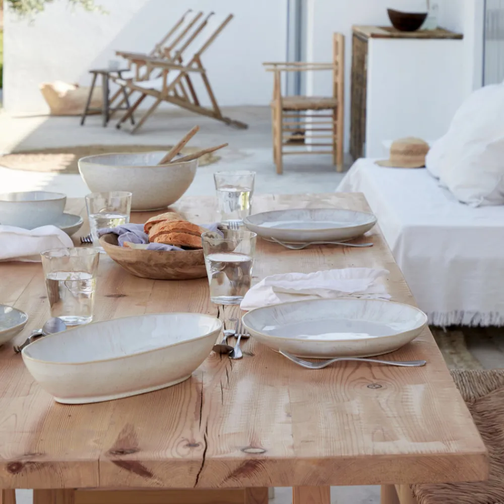 Costa Nova originated in a small Portuguese fishing village by the Atlantic Ocean. Carrying the name and heritage of Portugal worldwide, the brand creates fine stoneware collections that blend design, quality, and exceptional ceramic craftsmanship. The Eivissa Collection Pasta Bowls in Sand Beige, Set of 6, features wide, shallow profiles and a warm, reactive glaze inspired by sunlit coastal landscapes. Handcrafted and artfully finished, these bowls are ideal for pasta, grain bowls, or composed salads served with refined ease.