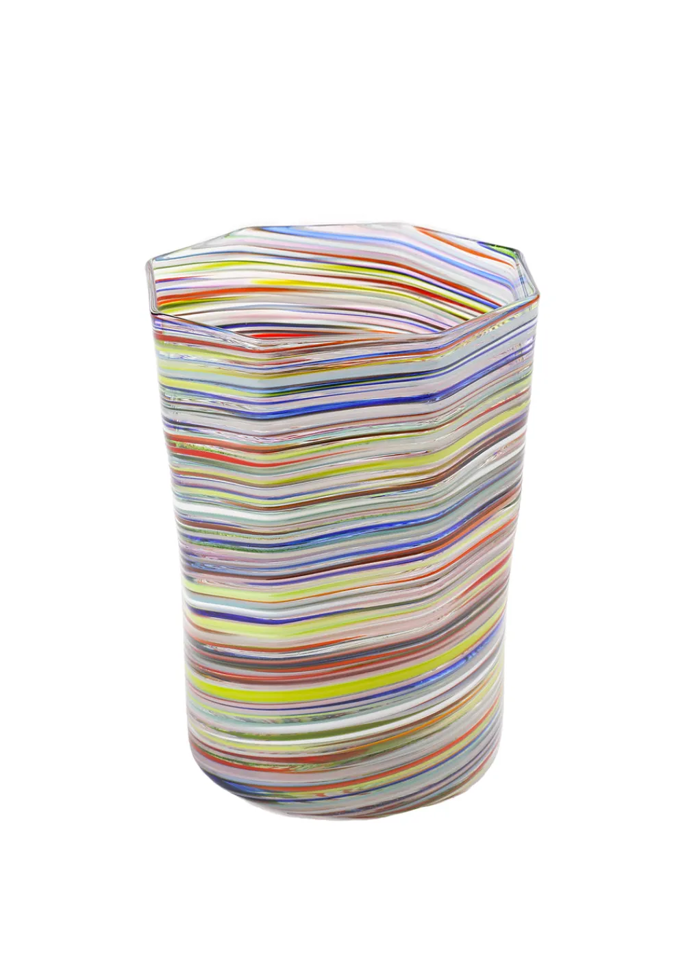 A studio practice that challenges conventions of art and design, Chris Taylor’s Craft Advisory creates products derived from his signature art projects. Each uniquely elegant piece combines the artist’s use of subversion and irony with a reverence for the tradition of glassmaking. Crafted with longstanding Venetian and Scandinavian glassblowing techniques, the Short Hand Blown Tumbler in Multi, Set of 6 presents a sculpted, octagonally shaped thin glass, with a graceful twist and inimitable coloration. An ideal conduit for everything from gin and tonics at cocktail hour to water at dinner.