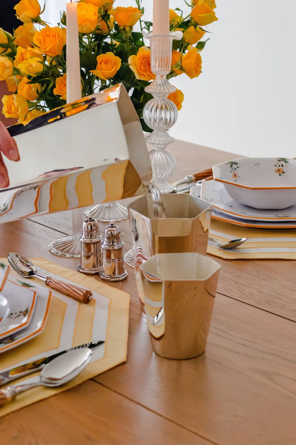 Esencial Hogar’s founder, Celina Wright, wants every gathering around the table a memorable one. What began as a small online shop based in El Salvador offering globally sourced treasures developed into its own collection of table linens —with linens sourced from India and finished by hand in El Salvador—designed to elevate the everyday. Designed with hosting in mind, Celina drew inspiration from her favorite Murano glasses whose thin glass and delicate nature sometimes felt too precious for regular use. Chic yet more durable, the Hexagon shape is simple yet striking. The tumbler adds sparkle and elegance to your table.