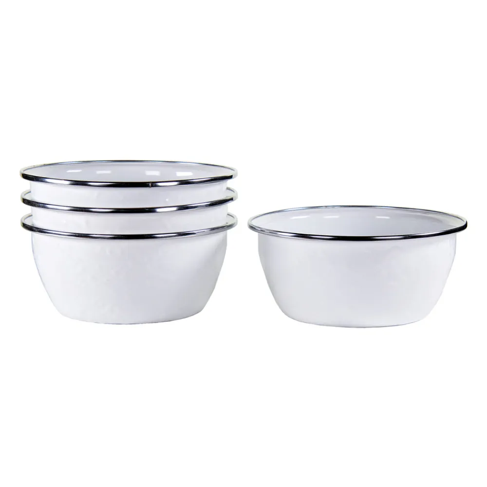 Founder Peggy Hedgpeth created Golden Rabbit to make everyday entertaining feel effortless. With functionality, safety, and durability at the forefront, the brand’s distinctive designs—from traditional enamelware to kid-friendly sets—set it apart in kitchens and dining rooms the world over. Coated porcelain enamel and trimmed with stainless steel to prevent chipping, the Salad Bowls in Solid White, Set of 4 adds a brilliant dash of style and sophistication to your service of sides, soups, desserts, and of course, salads.