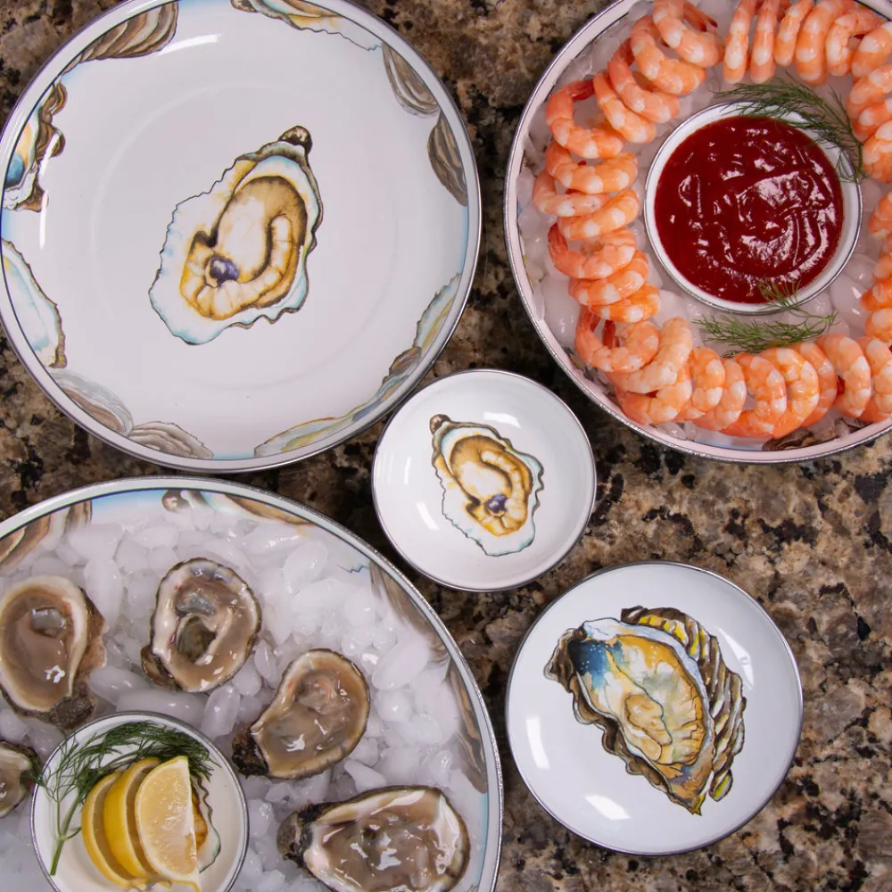 Founder Peggy Hedgpeth created Golden Rabbit to make everyday entertaining feel effortless. With functionality, safety, and durability at the forefront, the brand’s distinctive designs—from traditional enamelware to kid-friendly sets—set it apart in kitchens and dining rooms the world over. Coated porcelain enamel and trimmed with stainless steel to prevent chipping, the Small Tray in Oyster adds a dash of marine style and sophistication to your service of apps, deserts, or family style courses.