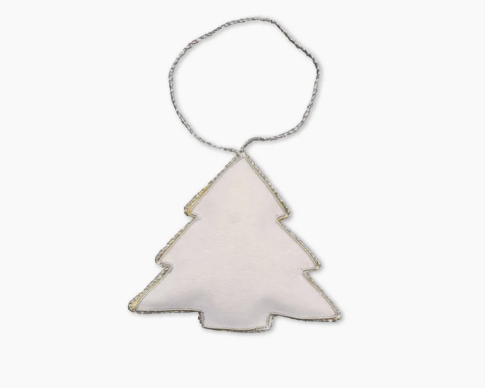 Founded in 2012, Henry Handwork brings joy to the everyday with handmade textiles for the home. Placing tradition and quality at the forefront, the brand resurrects the fading craft of hand-embroidery and needlework, embracing the heritage of finely-wrought European linens. The Holiday Tree Ornament is embellished with beads, metallic thread and hand-stitched on velveteen fabric. A classic and timeless design with multi-colored sparkle, this piece is the mini tree addition to any big tree.