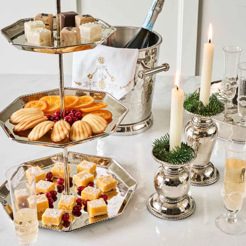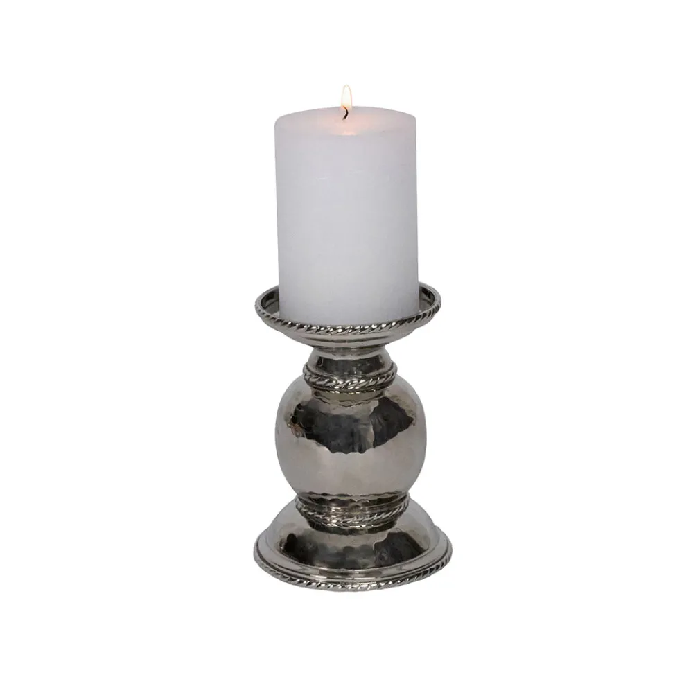 As newlyweds and self-proclaimed romantics, Capucine and David Gooding founded Juliska in 2001 with a small collection of mouth-blown glasses. Today, it’s the tableware and home brand every good hostess needs to know. The Graham 5″ Pillar/Taper Candle Holder is handcrafted of hammered stainless steel for a shimmering effect, accented with Juliska’s signature thread motif, and polished to a brilliant finish. Designed to hold either taper or pillar candles, it’s a versatile piece that adds elegance from everyday settings to grand occasions.