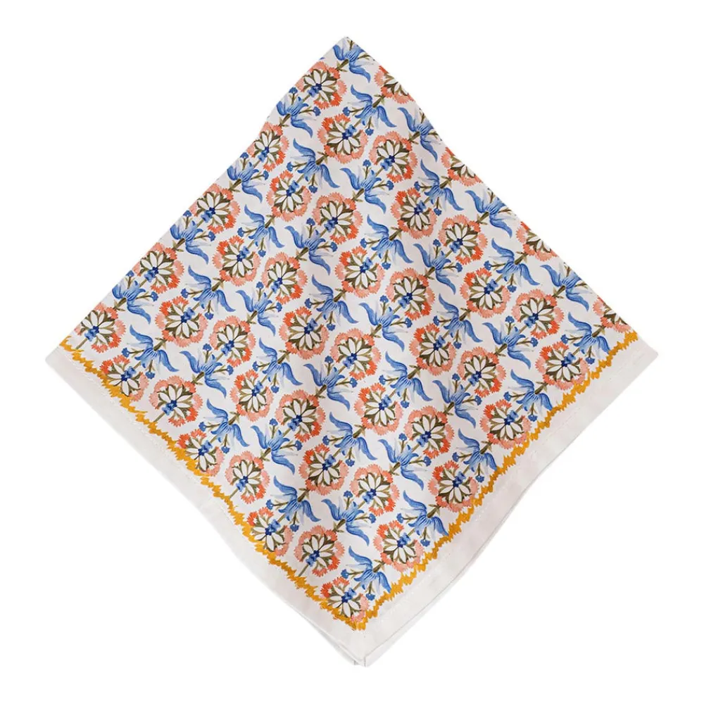 As newlyweds and self-proclaimed romantics, Capucine and David Gooding founded Juliska in 2001 with a small collection of mouth-blown Bohemian glasses. Today, it’s the tableware and home brand every good hostess needs to know. Featuring a subtle stripe with rows of bold, blooming flowers, the Emilie Napkin in Chambray is an linen to enliven your table. We especially adore the combination of hot orange-poppy and cool cornflower blue hues for easy and elegant mixing and matching.