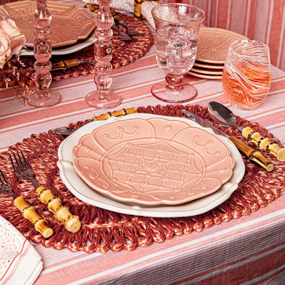 As newlyweds and self-proclaimed romantics, Capucine and David Gooding founded Juliska in 2001 with a small collection of mouth-blown Bohemian glasses. Today, it’s the tableware and home brand every good hostess needs to know. Handwoven with rich, natural fibers, the Straw Loop Oval Placemat in Coral is energized by rich texture, begging to be layered with chic patterns and color.