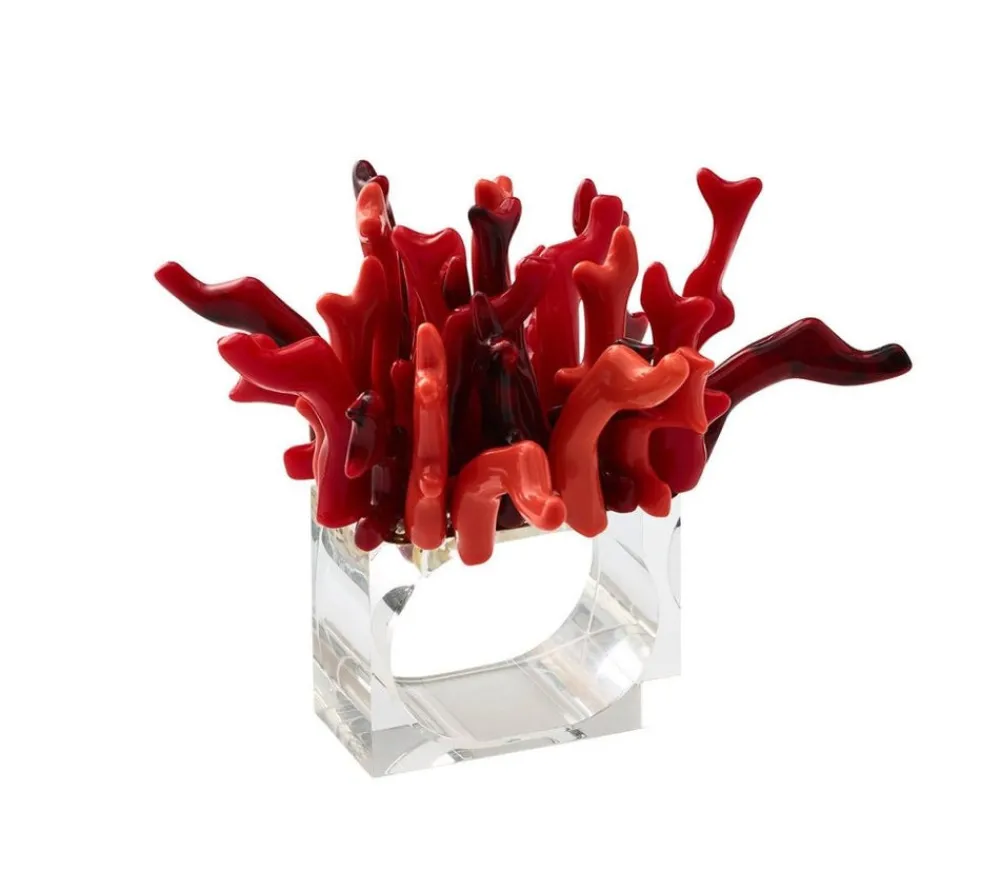 Kim Seybert designs artisan-made tabletop decor and luxury home accessories. Create a well-dressed dining look with the brand’s range of elegant tableware, placemats, runners, chargers, plates, napkins, flatware, and more. The Amalfi Napkin Ring, Set of 4 in Gift Box borrows it shape and colors from nature’s coral formations. Use the all-red version on each place setting or mix in the white and turquoise for a fun touch at your next poolside party. Available in red, white and, turquoise and are made from organically-shaped coral-like beads.