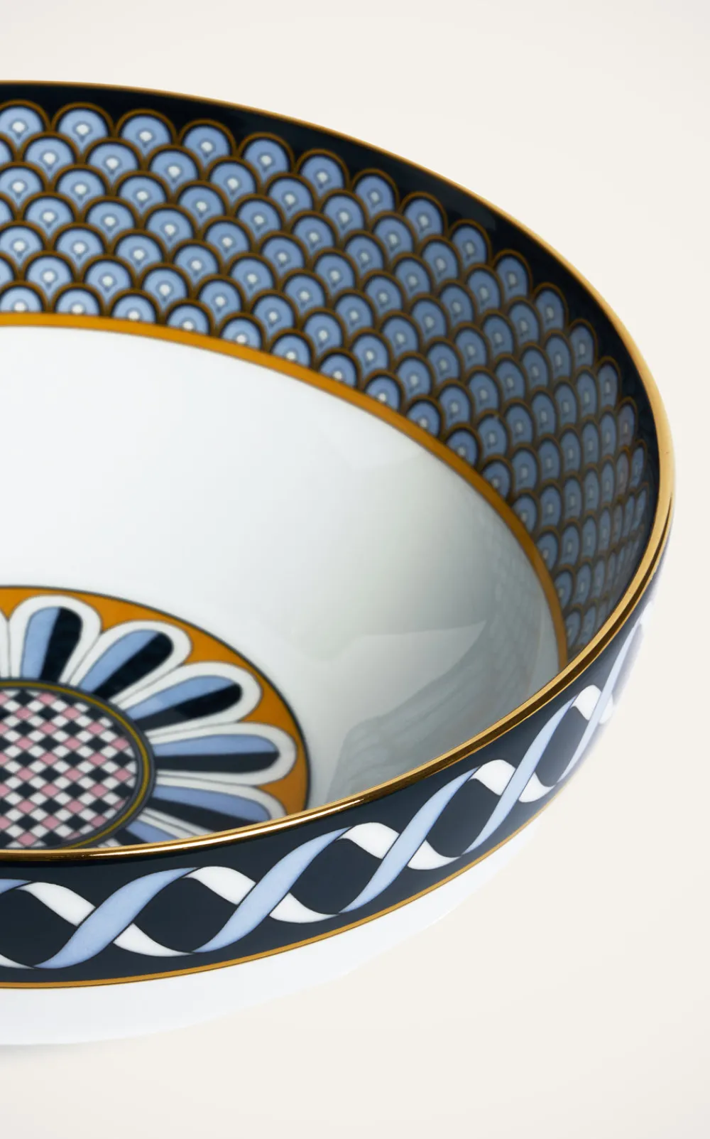 100% porcelain. Odysseus Midnight print. Hand-painted 18K gold rim. Made in Italy.