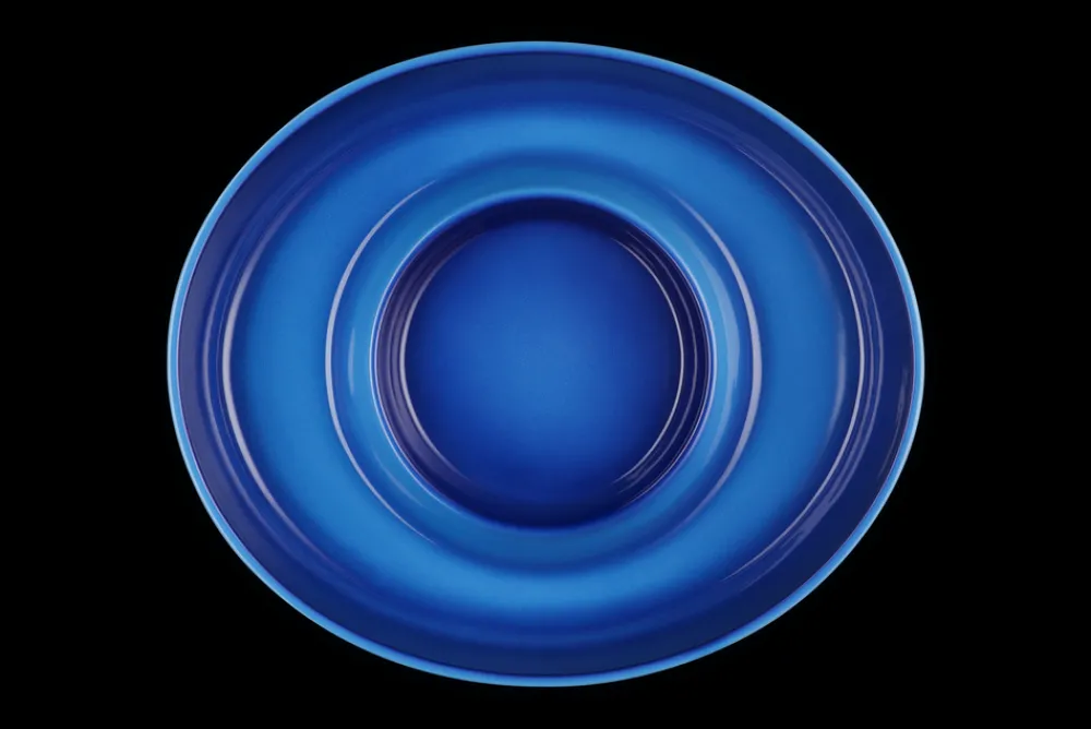 Recognized for its strength and durability, as well as its beauty and quality, Le Creuset produced the first enameled cast iron cookware nearly a century ago. A tradition of maintaining the finest culinary craftsmanship, combined with the latest innovations, means Le Creuset is known for blending classic form with real function and that it’s made for home cooks and professional chefs alike. Add sophistication and versatility to entertaining with the Signature Oval Chip & Dip Platter in Marseille. Featuring a spacious outer section for chips, fruit, vegetables, or oysters on ice, and a central bowl ideal for dips, garnishes, or even a 24 oz. Mini Cocotte, this platter brings elevated presentation to any gathering.