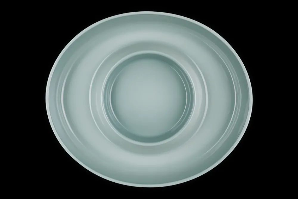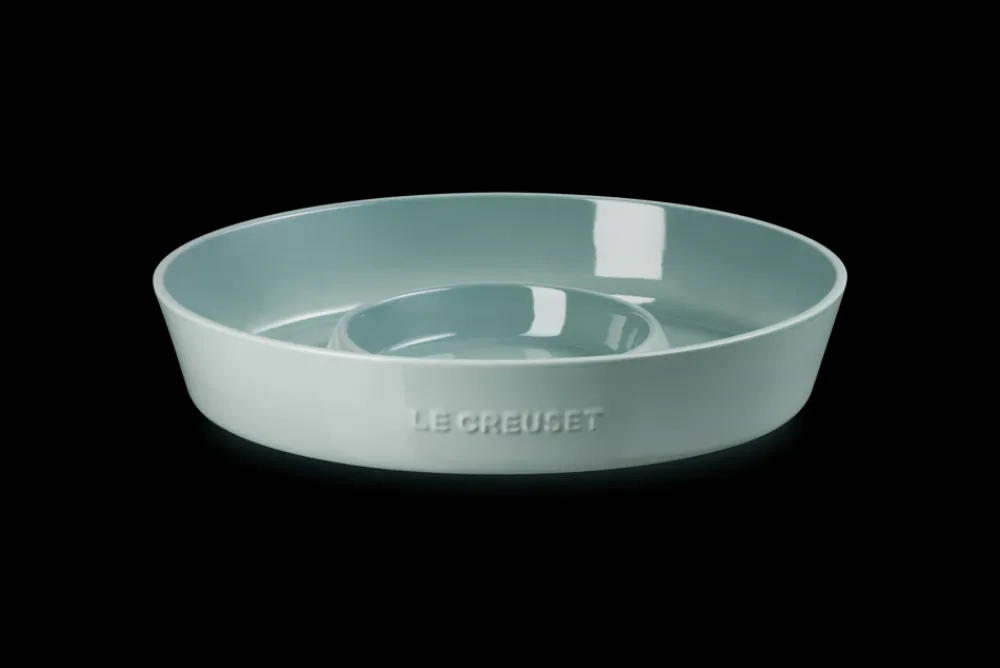 Crafted from premium stoneware for excellent heat retention and uniform temperature. Finished with a vibrant, non-porous glaze that resists scratches, stains, and flavor absorption. Center dip bowl holds sauces, garnishes, or a Mini Cocotte; wide outer section accommodates a variety of snacks or serving arrangements. Designed to seamlessly blend elegance with everyday utility.