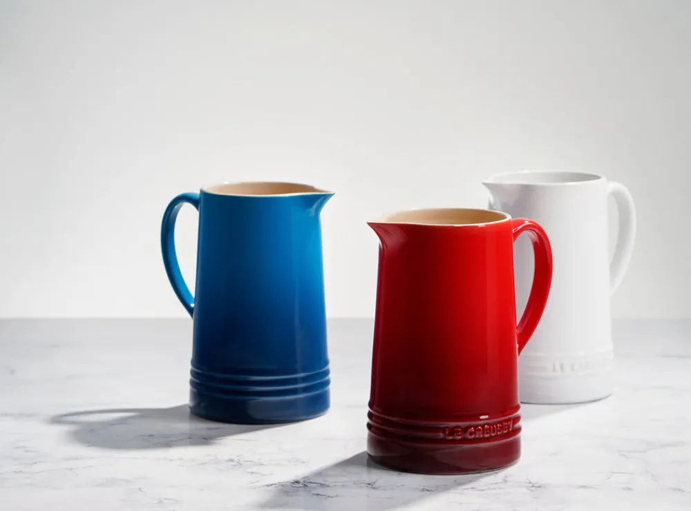 Recognized for its strength and durability, as well as its beauty and quality, Le Creuset produced the first enameled cast iron cookware nearly a century ago. A tradition of maintaining the finest culinary craftsmanship, combined with the latest innovations, means Le Creuset is known for blending classic form with real function and that it’s made for home cooks and professional chefs alike. The Pitcher is an elegant option for serving your favorite hot or cold drinks. Due to the density of the stoneware, hot liquids stay hot and cold liquids stay cold between pours.