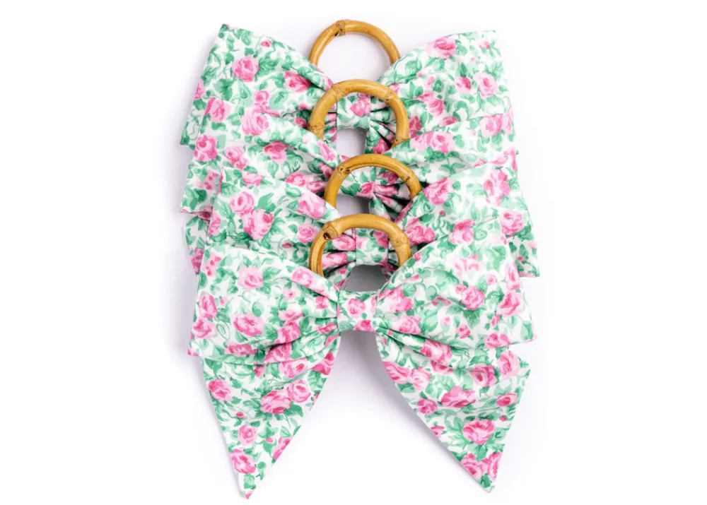 Set of 4. 100% cotton. All of our napkin rings are attached to 2″ natural bamboo rings. Handmade in New England.