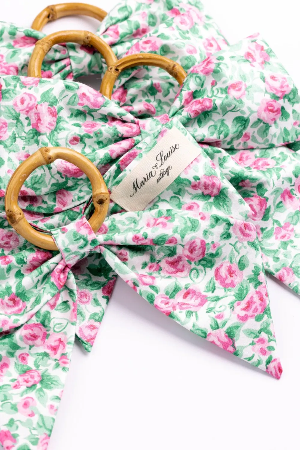 Maria Louise Cottage is a cozy haven steeped in history and charm. Once a humble milk room from the early 1900s, this space has been lovingly transformed into a workshop of creativity and craftsmanship. Every item here is meticulously handmade, infused with care and attention to detail. We use vintage fabrics, each carrying its own story, which means many of our creations are one-of-a-kind treasures available in limited quantities. The Rose Garden Napkin Rings in Green, Set of 4 are made with vintage fabric to add a touch of vintage country charm to your table.