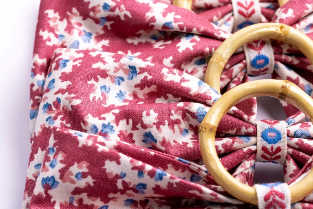 Set of 4. 100% cotton. All of our napkin rings are attached to 2″ natural bamboo rings. Handmade in New England.