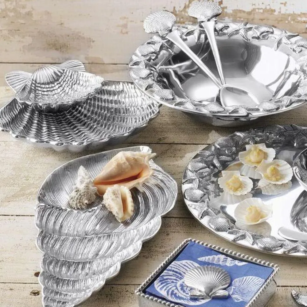Known for its unique range of decorative homewares, handmade by artisans and notable designers from only recycled materials, Mariposa has been a leader in sustainability and style since its founding in 1983. Bring undersea treasures to your table with our Seaside collection. Scallop shells interlock gracefully on the Scallop 2-Piece Chip Dip to create a unique server for appetizers or snacks.