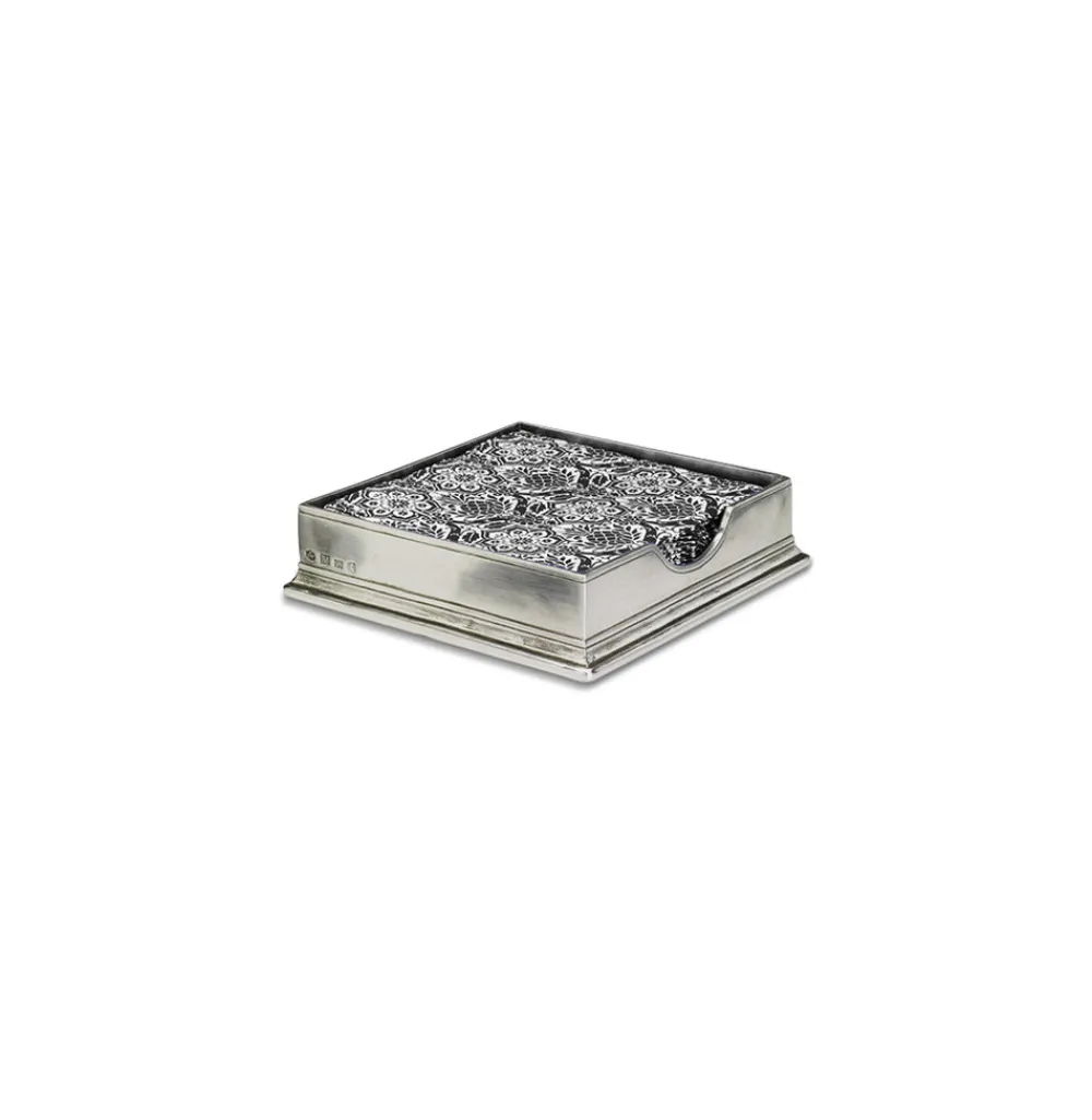 Created in 1995, Match single-handedly introduced America to the beauty of Italian pewter. Founder David Weiss carefully selects the finest workshops to produce effortless, versatile designs for kitchen, tabletop, and home interiors. The Cocktail Napkin Box with No Weight adds a chic, stylish lift to the simple paper napkin. Perfect on a bar top, buffet table, or at an outdoor summer gathering.