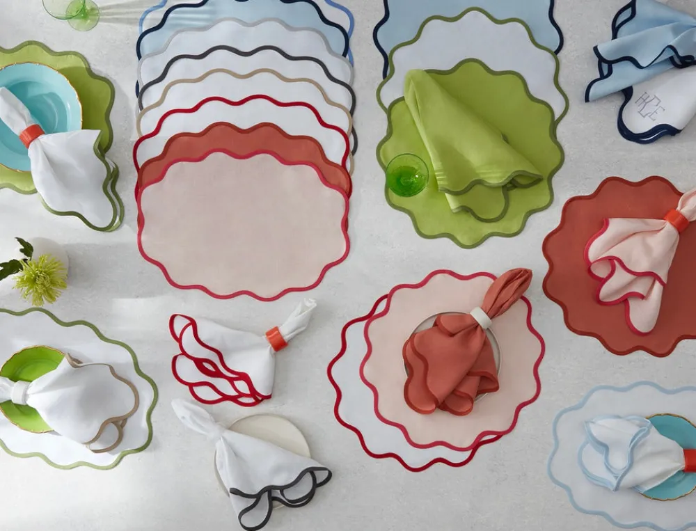 For nearly 100 years and three generations, Matouk has handcrafted luxury linens from the world’s finest materials. Their dedicated artisans in Fall River, Massachusetts are committed to creating the highest quality, most-loved bed, bath, and table linens for your home. Crafted from 100% linen, and featuring a taped border detail, the Scallop Edge Oval Placemat is designed for mixing and matching to create a unique tablescape of your own.