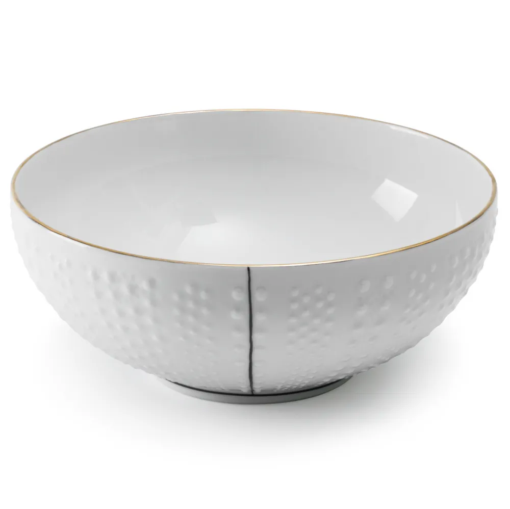 Molecot’s sophistication arrives by way of its founders, three Spanish businesswomen and friends, who sought to augment the art of entertaining with fine tableware. Taking inspiration from trips across the world, fashion, and art, every occasion becomes unique with these pieces’ embrace of both tradition and contemporary style. The Coral series is distinguished by its finesse, wherein the contrast of the scalloped, black edges stand out against its golden border finish. Crafted in Limoges porcelain and hand-painted, the Coral Large Salad Bowl is ideally elegant for serving salads to the whole family, displaying fruit, and more.