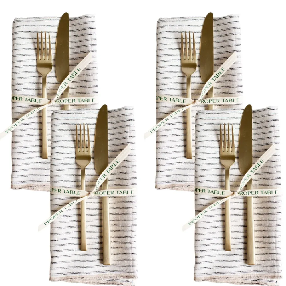 Proper Table’s placemats and linens bring festive style to every tabletop. Easy to wash and care for, these versatile linens will delight diners no matter the occasion. Crafted in relaxed linen, the Eliot Classic Ticking Napkin Set brings softly shaded hues to mealtime. Complement or contrast the versatile pattern with flatware and dishes in any colorway.