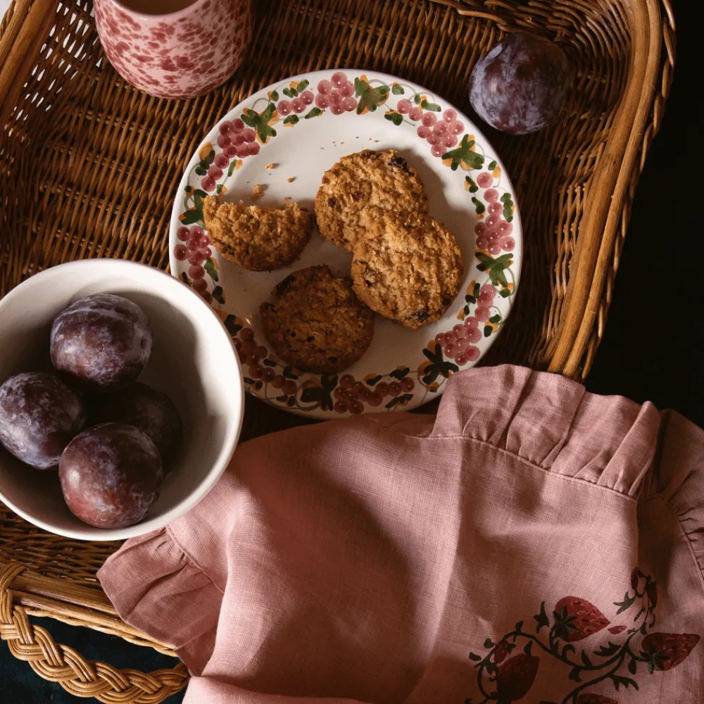 A former fashion and lifestyle journalist, Louise Roe founded Sharland England to bring inspiration and nostalgia to household items. The brand supports slow, meaningful design and traditional artisanship with tabletop, household, and rattan items that are built to last. Hand-painted and available in green and pink or tan and mustard, the Vine Dinner Plate is delicately rimmed and totally versatile; it can be dressed up for a formal occasion, or used every day for casual suppers. Delightfully elegant.
