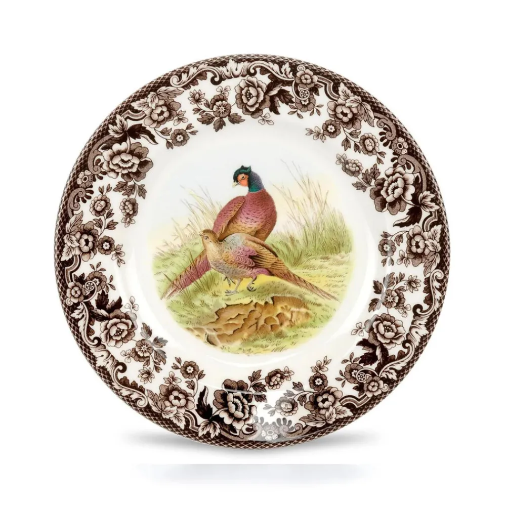 Founded by Josiah Spode in 1770, Spode has been producing the finest ceramics and celebrated designs in Stoke-on-Trent, England for 250 years. Spode is the authority on great British style bringing heritage style to modern day life. Woodland’s designs are rooted in the traditions of hunting for game and its elaborate presentation on the table. Central to the charm of the pattern are the striking studies of different animals framed by the British Flowers border which dates back to 1831. This Woodland Salad Plate features a Pheasant. Casually formal for every day living, this set is dishwasher and microwave safe.