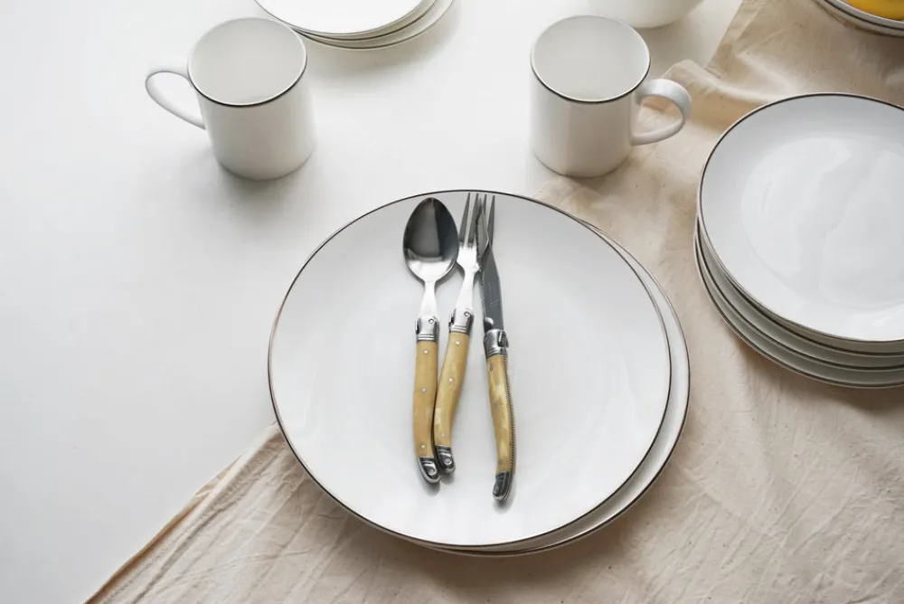 NYC-based Twig New York is known and loved for its range of fine bone china created by a team of artists and designers who are dedicated to quality and who believe that ordinary moments can be some of the most beautiful. The Alex Platinum 10″ Dinner Plate is a stunning example of what sleek simplicity can bring to the table when executed properly. This bone china plate is adorned with hand-painted Platinum rim and is versatilely sized to accommodate whatever’s delicious entree is on the menu.