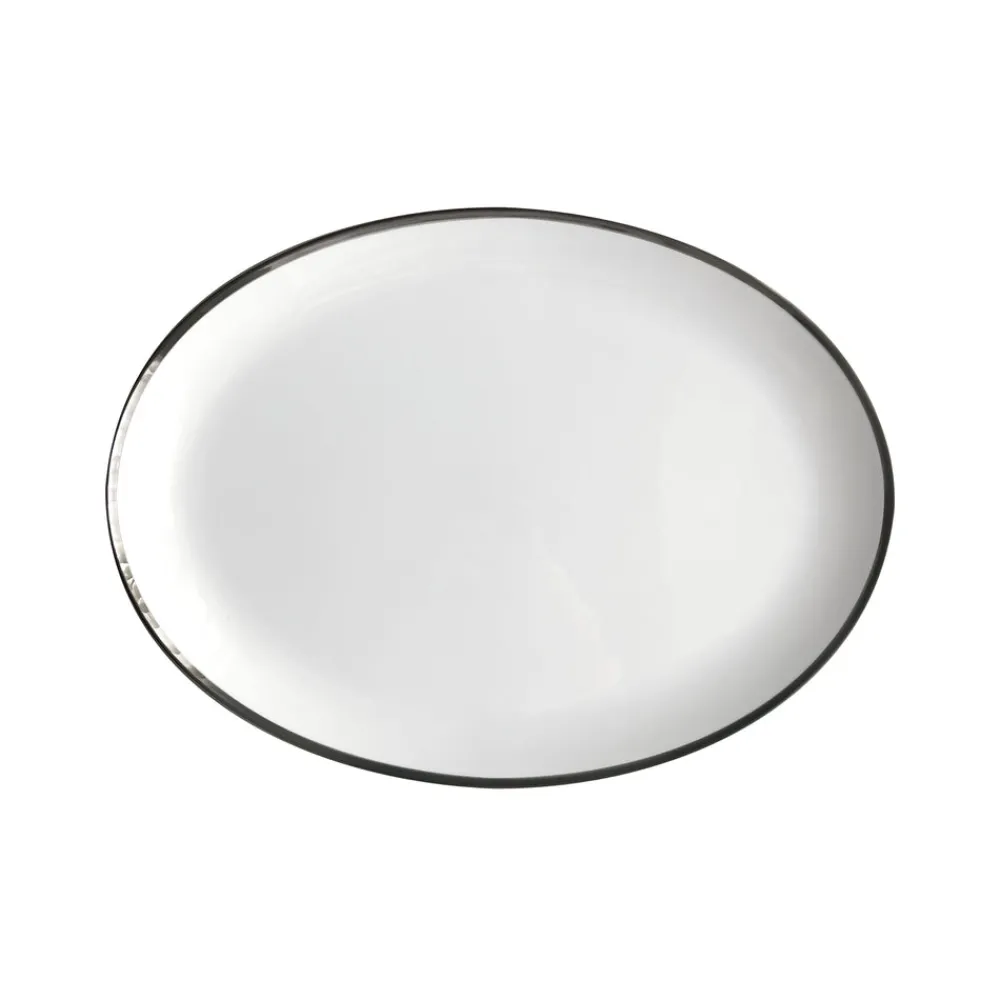 NYC-based Twig New York is known and loved for its range of fine bone china created by a team of artists and designers who are dedicated to quality and who believe that ordinary moments can be some of the most beautiful. Enhance your dinnerware collection with the visually stunning and versatile Platinum Edge Oval Platter. This clean and simple design is adorned with a hand-painted sleek and shiny platinum edge, resulting in a look that’s a true celebration of understated elegance.
