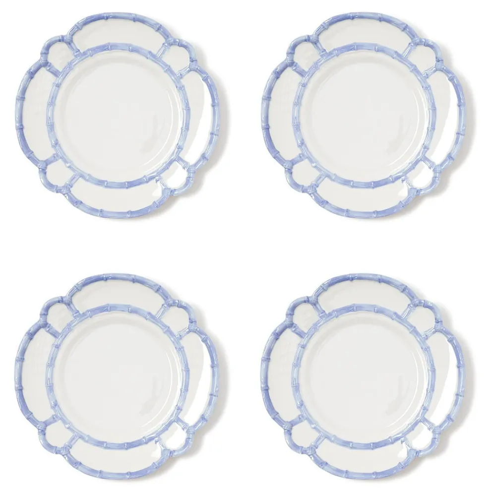 Set of 4. 100% durable melamine construction. Bamboo rim design. Shatter-resistant for worry-free use.