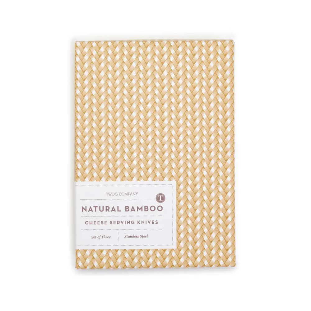 Started in a couple’s Westchester home in 1969, Two’s Company is a single destination for a wide range of stylish contemporary gifts, homewares, and accessories. From chinoiserie dish collections to accents for the sofa, the brand’s offerings are once sophisticated and accessible, making it an ideal gifting source for weddings, babies, new homes, birthdays, and more. Each piece in the Natural Bamboo Handle Cheese Knives in Gift Box, Set of 3 has a wonderful natural bamboo handle, emanating an organic natural affect at your next meal or aperitif.