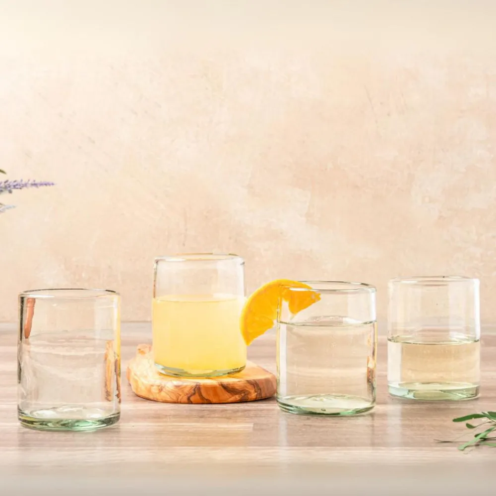 Set of 4. 100% recycled, lead-free glass. Hand-blown in Mexico.