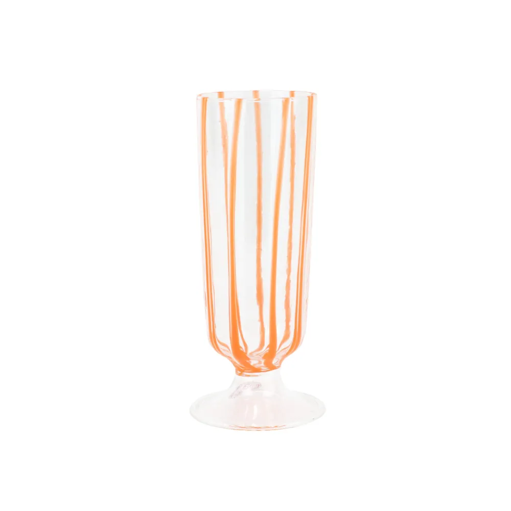 Inspired by Italian lifestyle, history, and culture, VIETRI uses the highest-quality clays from the soil of Italy’s countryside to produce beautiful, everyday items for your home. Hand-painted details, quality glazes, and fine craftsmanship help you savor the moments spent at your table and the company of those who join it. The Nuovo Stripe Champagne Glass in Orange is mouthblown by skilled artisans and features playful, painterly stripes—bringing vibrant charm and artisan character to celebratory toasts and everyday moments alike.