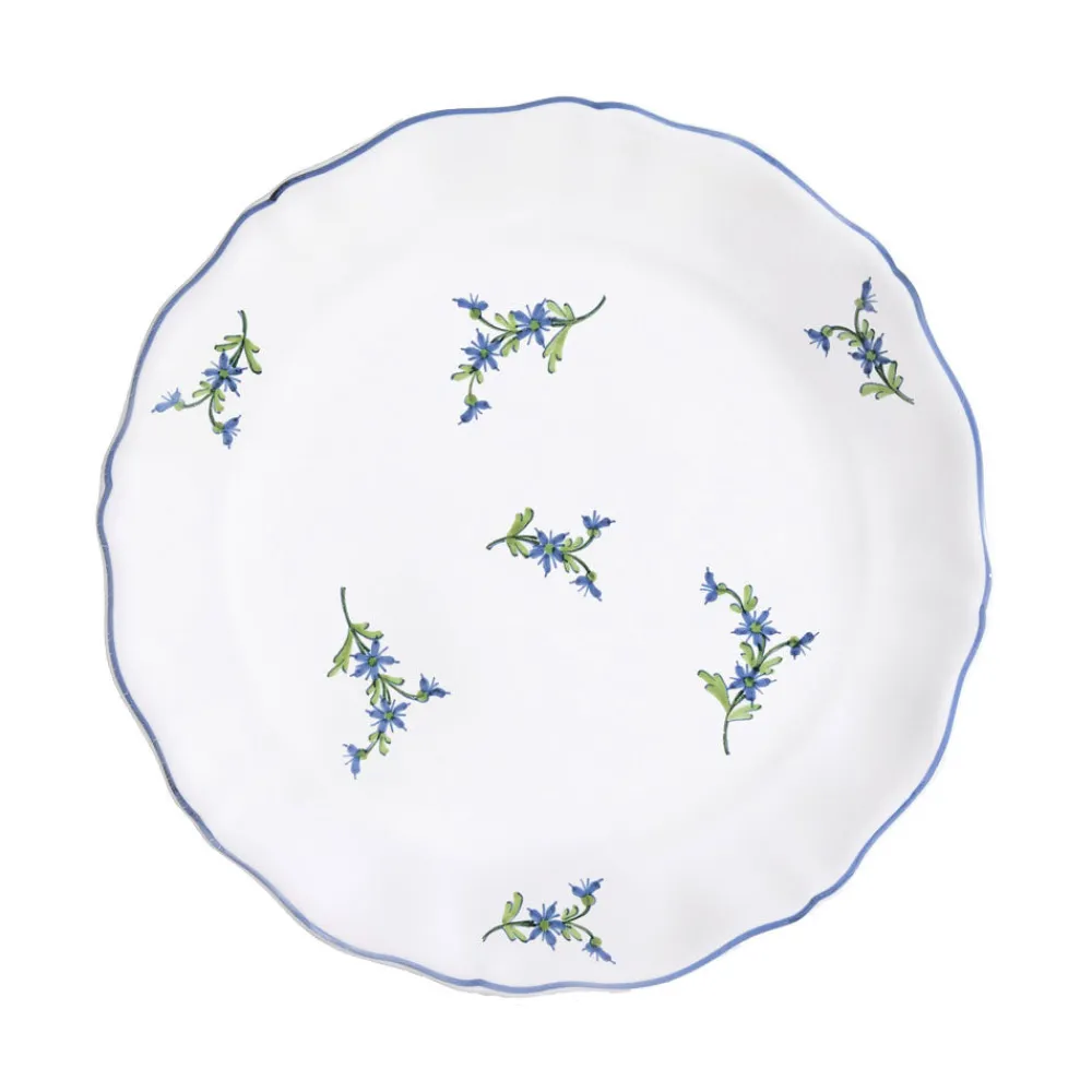 Zoë de Givenchy’s French-made ceramics, linen, and flatware display refinement above all else. This, and a certain je ne sais quoi, were gleaned from her husband’s uncle, Hubert de Givenchy, the legendary couturier and one of the century’s finest hosts. This craftsmanship is beautifully showcased in this Les Bleuets capsule collection. The Les Bleuets Dinner Plate in Bleu Égyptien et Vert is entirely hand-formed and hand-painted in Moustiers, France, the home of French faïence for centuries. Queen Marie-Antoinette’s favorite, the Cornflower, is a traditional motif in French porcelain—and now, on your table.