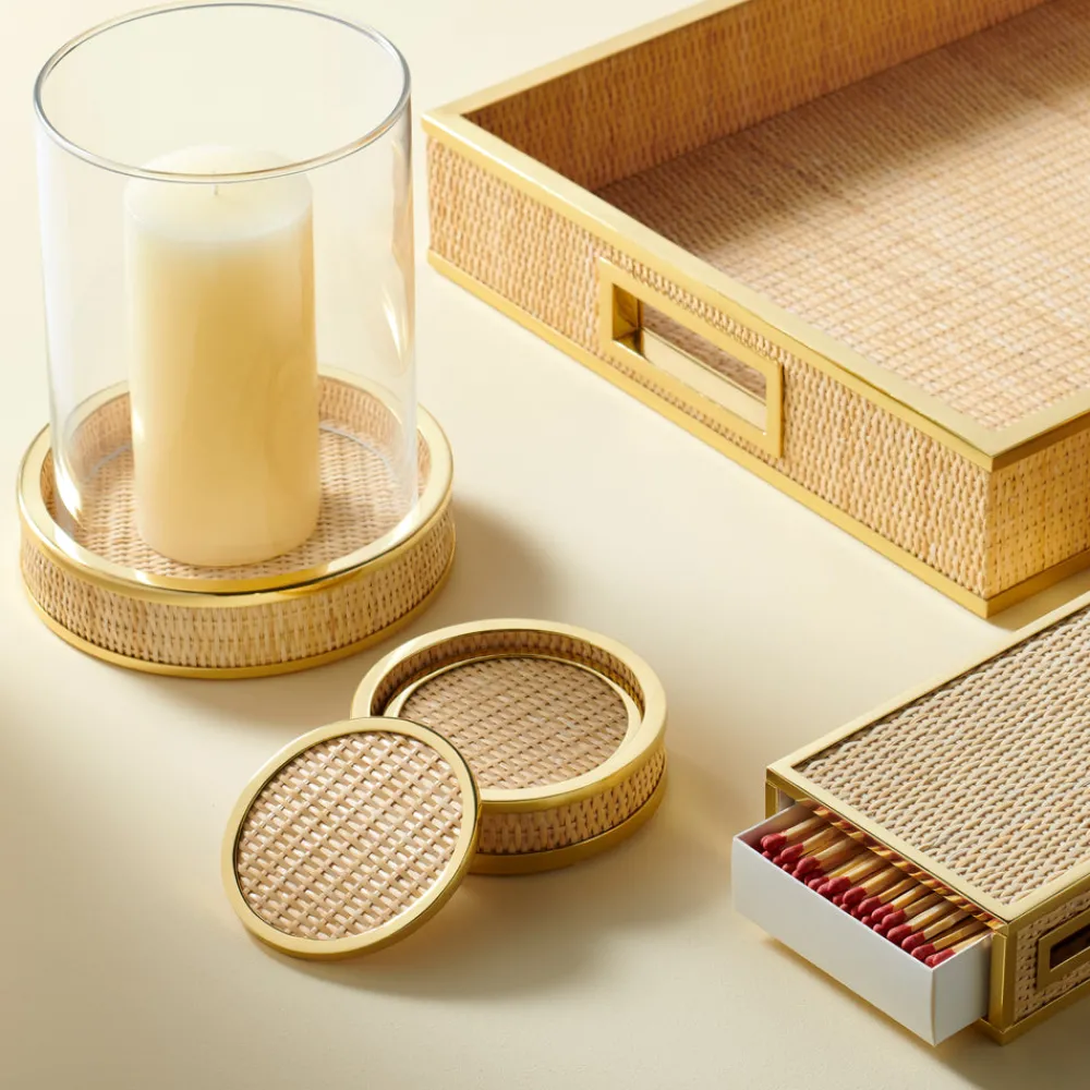 Create the ideal atmosphere with this stylish Colette Hurricane. Featuring a woven cane base that is a natural addition to an informal table setting (whether dining indoors or al fresco) it has a casual feel that makes it ideal for coastal living.