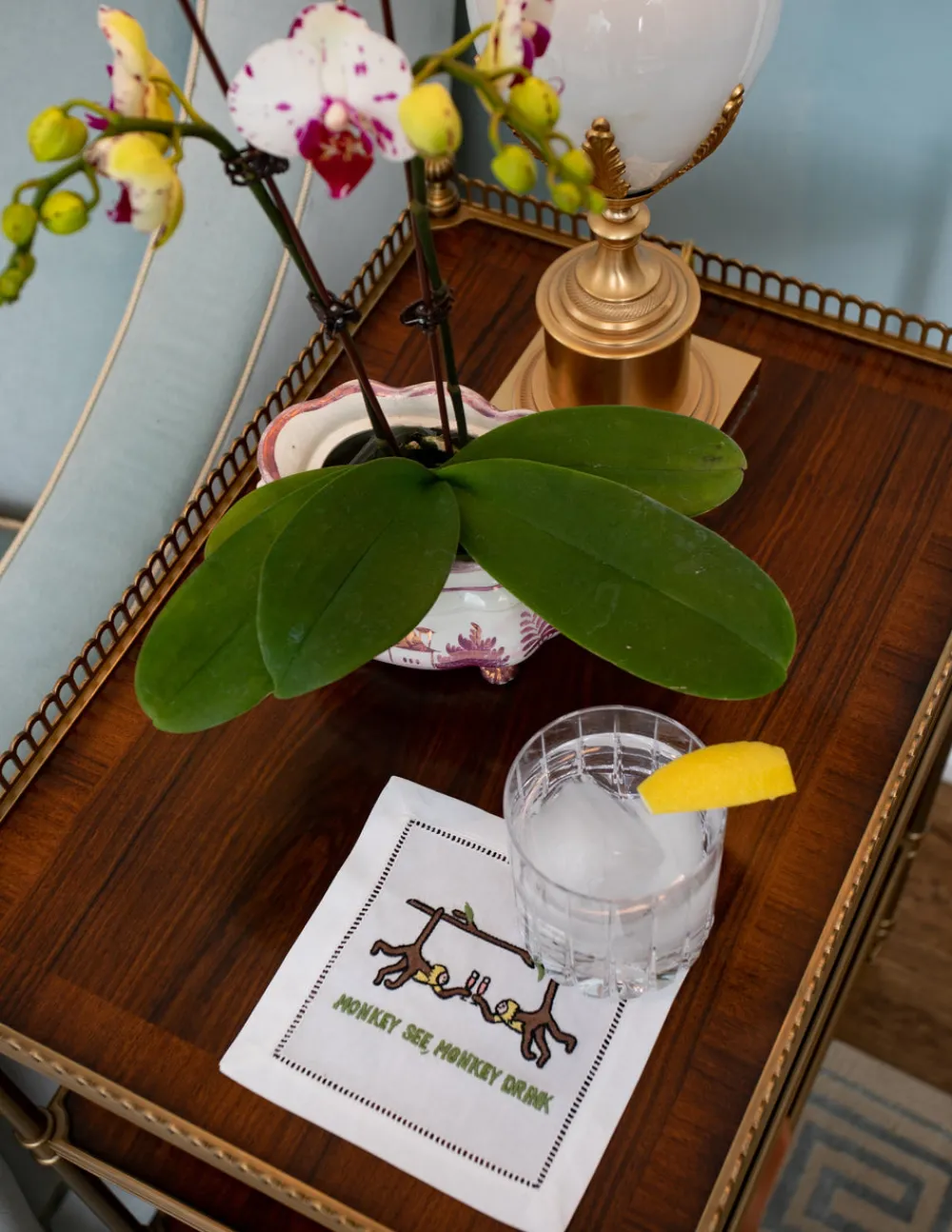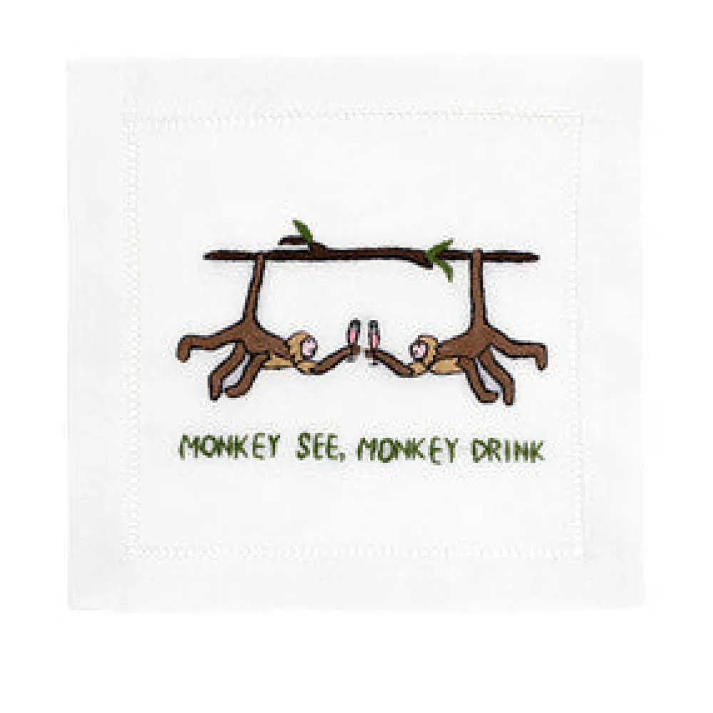 When Kate Hersch founded August Morgan, she coupled irreverence with elegance and produced a delightful line of hand-embroidered linen napkins. The cheeky charm brings humor to cocktail hour and serves as an instant conversation starter. The Monkey See, Monkey Drink Cocktail Napkins elevate your guests’ experience with elegant cotton and classic hemstitching—finished with a dynamic duo. This is our favorite kind of monkey business!