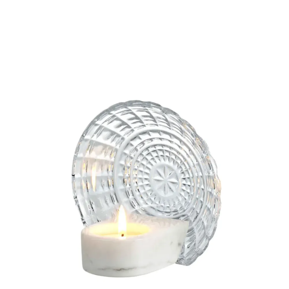 Founded in 1765, Baccarat is renowned throughout the world for the remarkable quality and timeless design of its glassware. With master blowers, cutters, engravers, and gilders honing their techniques to perfection, Baccarat introduces you to the finest crystal and an entire world of excellence. A precious little piece combining the purity of crystal and the refinement of white marble, the Aura candleholder diffuses an enchanting light that creates a striking interplay of reflections.
