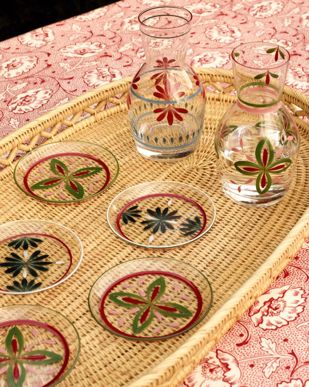 Founded by Martina Mondadori and Christoph Radl in 2014, Cabana Magazine inspires a new generation of globe-trotters on their journey through collecting, colors, and fabrics. The Cabana homewares collection brings its pages to life while evoking a distinctive Italian mood. Part of the brand’s 10th Anniversary Collection, the Hand Painted Carafe, Blue and Red features a floral motif in shades of blue and red with a red border. We love it as a water carafe, or as a vase for displaying fresh flowers.
