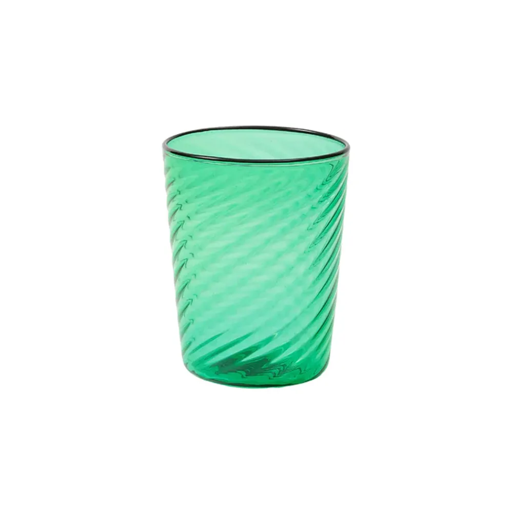 Founded by Martina Mondadori and Christoph Radl in 2014, Cabana Magazine inspires a new generation of globe-trotters on their journey through collecting, colors, and fabrics. The Cabana homewares collection brings its pages to life while evoking a distinctive Italian mood. Part of the brand’s 10th Anniversary Collection, the Venezia Wine Glass is playful yet refined with its twisted texture surface in a deep green hue. Each piece is crafted by Laguna~B’s master craftsmen following centuries-old Murano glassblowing techniques. A handpainted black detail on the rim lends a modern twist to this classic form. This timeless collection will be a chic addition to any table.