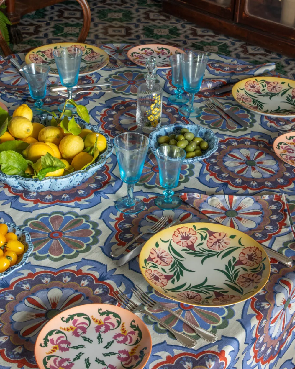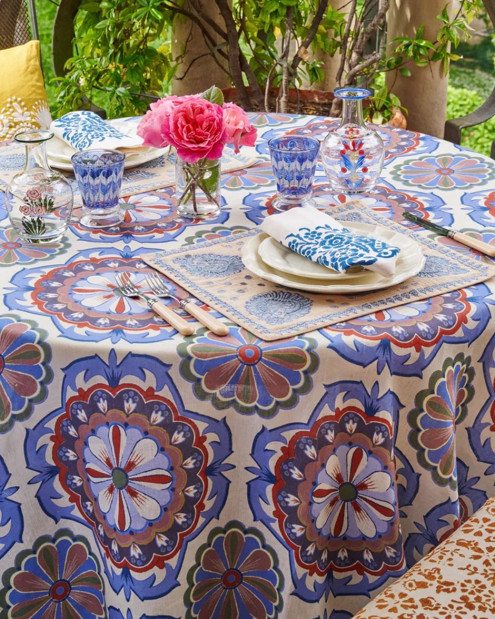 Inspired by the pages of Cabana—a magazine for a new generation of globetrotters—Casa Cabana’s homewares both explore and expand the worlds we share with our interiors. Designed in-house and hand crafted by artisans the world over, each piece feels unique, collectible, and at once part of your home. Drawing inspiration from silk Mughal carpets with their repeated kaleidoscopic, mandala motifs, the Leonora Tablecloth Rectangular is handcrafted in Tuscany from 100% linen.