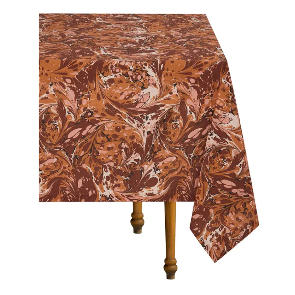 Inspired by the pages of Cabana—a magazine for a new generation of globetrotters—Casa Cabana’s homewares both explore and expand the worlds we share with our interiors. Designed in-house and handcrafted by artisans the world over, each piece feels unique, collectible, and at once part of your home. The Terracotta Collection is a stunning ode to Italy’s visual identity, defined by the rich, earthy tones of the country’s natural landscape, its celebrated terracotta rooftops, and sunbaked joie de vivre. The Perusia Tablecloth showcase an all-over marbled pattern in warm terracotta tones, inspired by traditional Florentine paper marbling. Printed in Italy on 100% cotton, they are a vibrant homage to the centuries-old craft of hand-dyed paper developed in Florence.