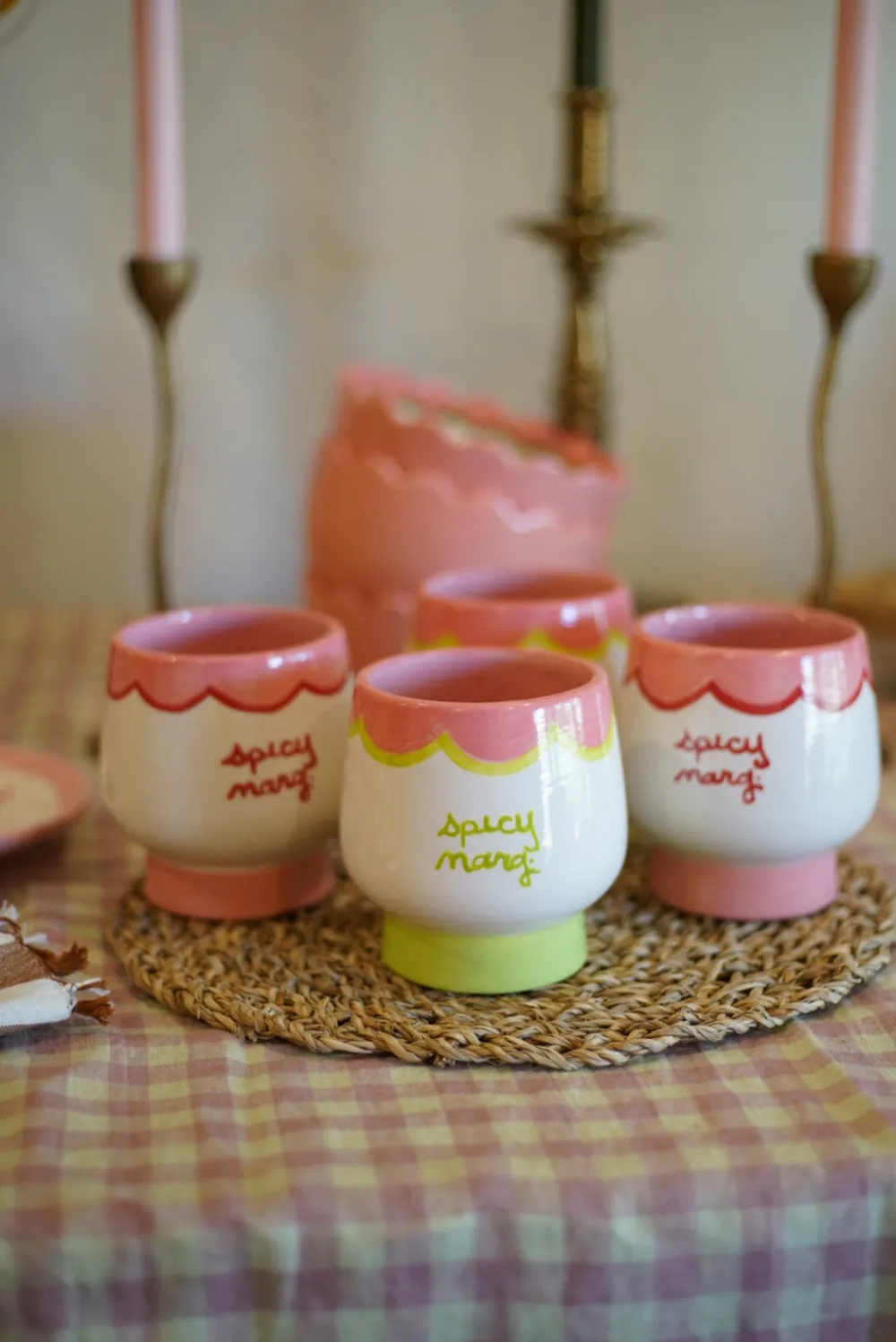 A one-of-a-kind tabletop brand, Caitlin Rounds Antiques specializes in artful, hand-painted ceramics. Each piece is thoughtfully crafted by collection and season—reflecting a blend of culture and craftsmanship. Add some elegance to your next celebration with this beautiful Hand-Painted “Spicy Marg” Cups, Set of 2. Cheerful, chic, and romantic, each glass is a unique piece of art, crafted with vibrant hues and intricate designs that bring a festive flair to any occasion.