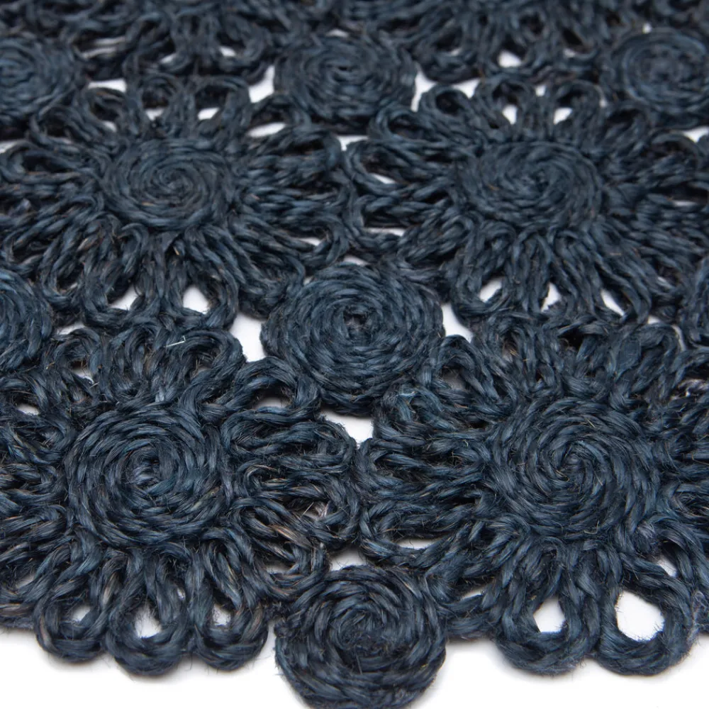 Inspired by stylistic trends from around the world, Caravan’s home accents embody an aesthetic that is both unique and unexpected, bringing everyday beauty and sophisticated simplicity to your home. The Daisy Jute 15″ Round Placemat in Navy, Set of 4, manages to be beautiful, sophisticated, and simple all at once. Handwoven from natural jute fiber, the scalloped floral design will enliven any table.
