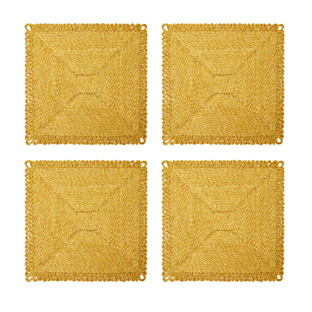 Inspired by stylistic trends from around the world, Caravan’s home accents embody an aesthetic that is both unique and unexpected, bringing everyday beauty and sophisticated simplicity to your home. Add a touch of elegance to your tablescape with the Loopy Square Placemat in Mustard, Set of 4. Featuring a natural weave design, these placemats are crafted from durable abaca, offering both style and functionality for everyday use. Sold in a set of 4, these placemats are easy to clean and perfect for casual family meals or more formal gatherings.