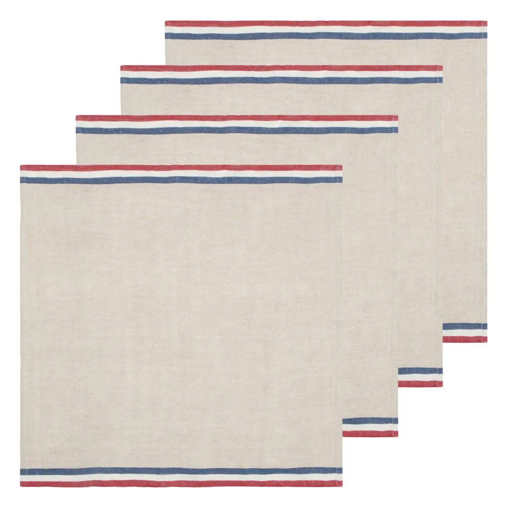 Inspired by stylistic trends from around the world, Caravan’s home accents embody an aesthetic that is both unique and unexpected, bringing everyday beauty and sophisticated simplicity to your home. The Normandy Napkins in Red, Natural, & Blue Stripes, Set of 4 will have your guests dreaming of French culinary delights. They are fashioned from linen, which is entirely handmade from the spinning to weaving stage for a natural oh so feel good hand.