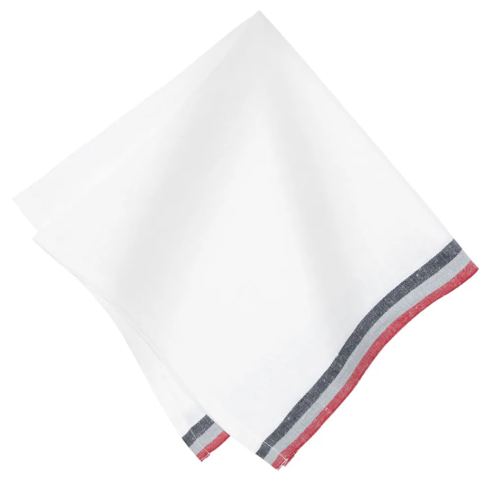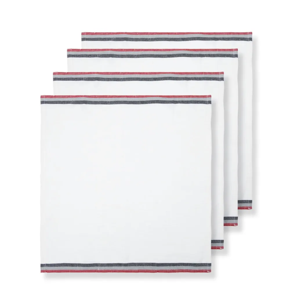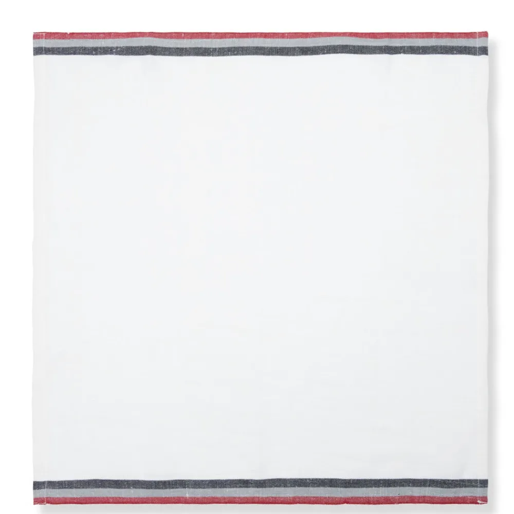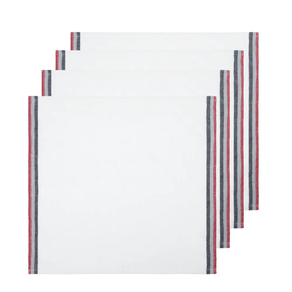 Inspired by stylistic trends from around the world, Caravan’s home accents embody an aesthetic that is both unique and unexpected, bringing everyday beauty and sophisticated simplicity to your home. The Normandy White Napkins in Red, Grey, & Black Stripes, Set of 4 will have your guests dreaming of French culinary delights. They are fashioned from linen, which is entirely handmade from the spinning to weaving stage for a natural oh so feel good hand.