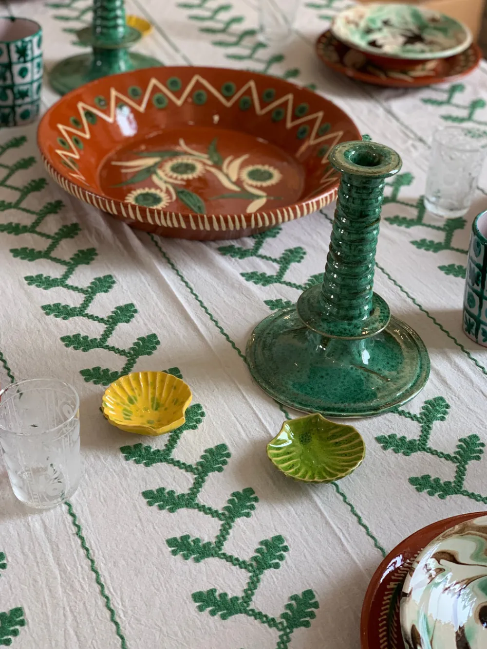 Founded by textile designer Carolina Irving and her two daughters, the intrepid label collaborates with artisans across the globe to curate homeware with rich stories. Inspired by the sea and its stunning shells, the Concha Mini in Splatter, Set of 2 is an instant statement whether you are dining or hosting.