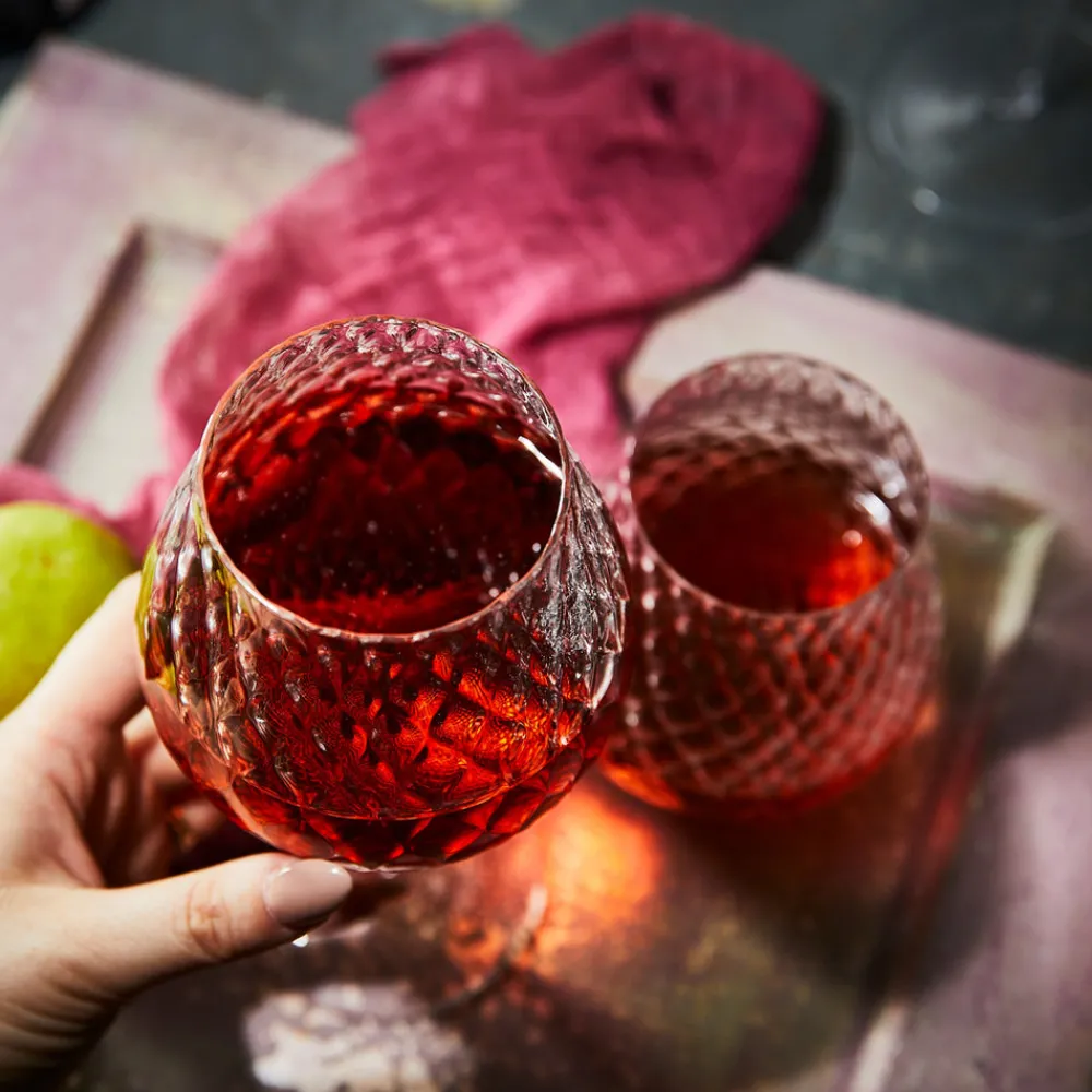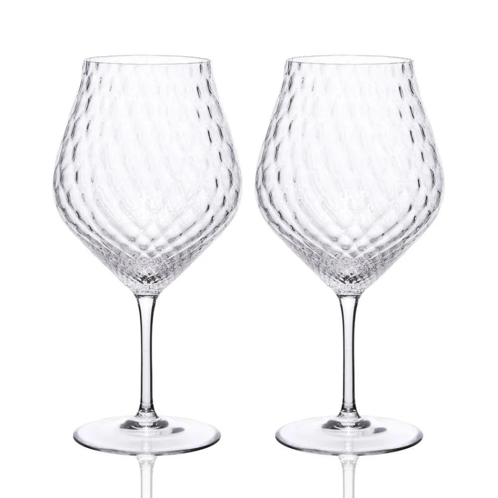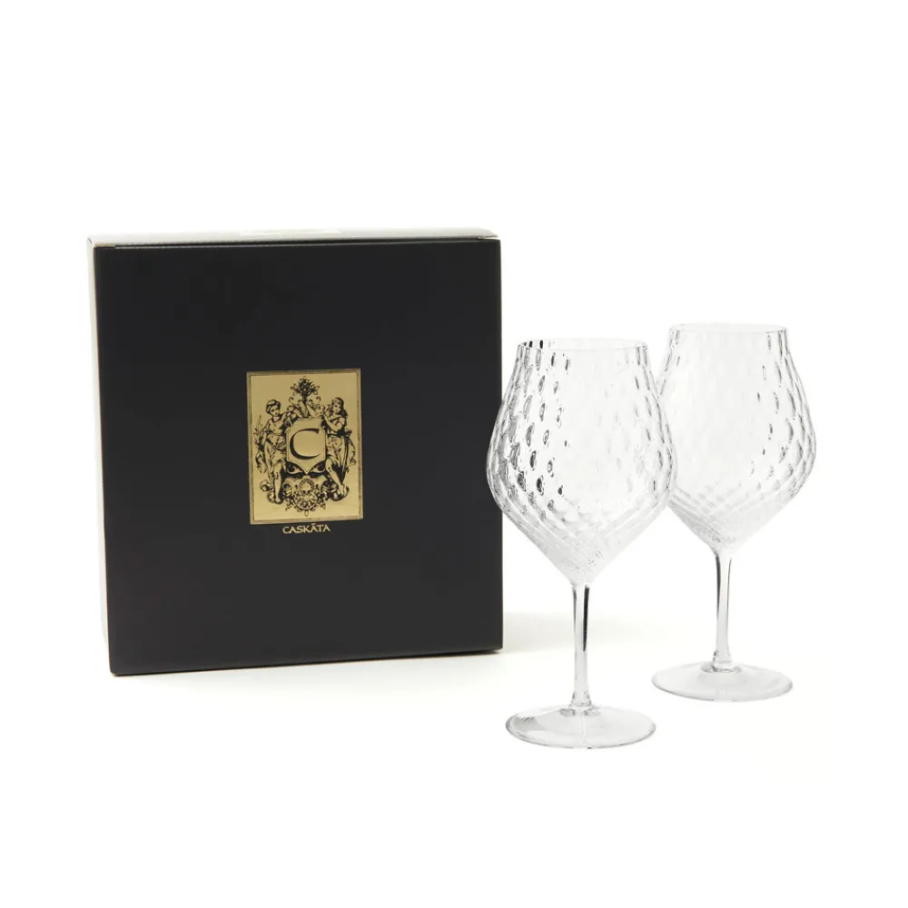 Caskata makes dinnerware for those who love to entertain. That joie de vivre and celebratory atmosphere makes its way into each piece of the brand’s blend of classic and contemporary designs, recognizable by their creative patterns, enduring quality, and light touch. The Phoebe collection is for non-traditionalists, those who enjoy an eye-catching pattern and dramatic curves. The Phoebe Clear Universal Wine Glasses, Set of 2, feature a wide base, tapered mouth and tulip shape. An ideal vessel for your favorite vintage, or even just a cool glass of water.